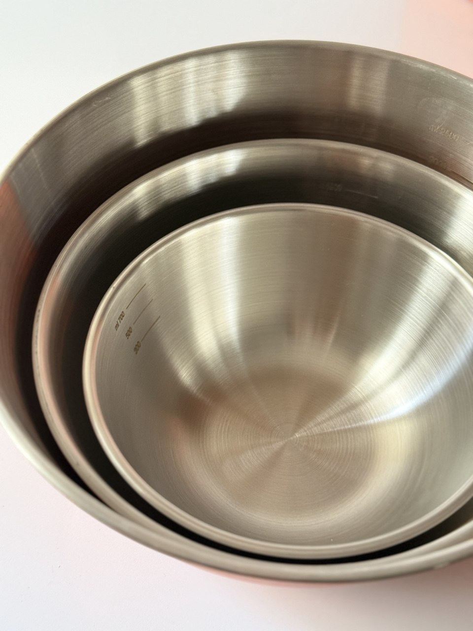 ست ۳تایی کاسه مدرج استیل با طراحی ساده و کاربردی، انتخابی مناسب برای استفاده روزمره در آشپزخانه است. درجهبندی داخلی کاسهها به شما کمک میکند مواد غذایی را با دقت بیشتری اندازهگیری کنید.
