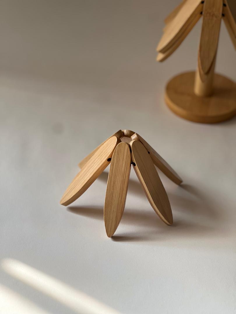 زیرقابلمهای بامبو به همراه استند، انتخابی زیبا و کاربردی برای هر آشپزخانه است. ساختهشده از چوب بامبوی طبیعی، مقاوم در برابر حرارت و رطوبت، و مناسب برای قرار دادن قابلمههای داغ روی میز یا کابینت.